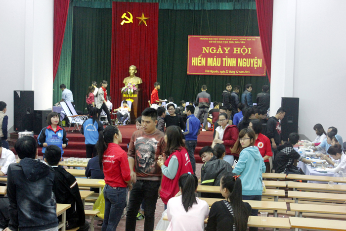 Thực hiện chương trình Công tác học sinh, sinh viên của trường Đại học Công nghệ GTVT năm học 2015 – 2016. Với mục đích tuyên truyền, nâng cao nhận thức cho CBGV, HSSV về ý nghĩa, tầm quan trọng của việc hiến máu cứu người.bổ sung thêm lượng máu phục vụ cấp cứu và điều trị người bệnh kịp thời. Sáng ngày 23/12/2015 LCĐ cơ sở Thái Nguyên phối hợp của TT Huyết học – Truyền máu tỉnh Thái Nguyên tổ chức chương trình Ngày hội hiến máu tình nguyện năm 2015.