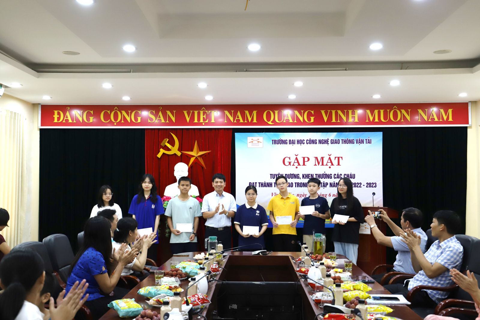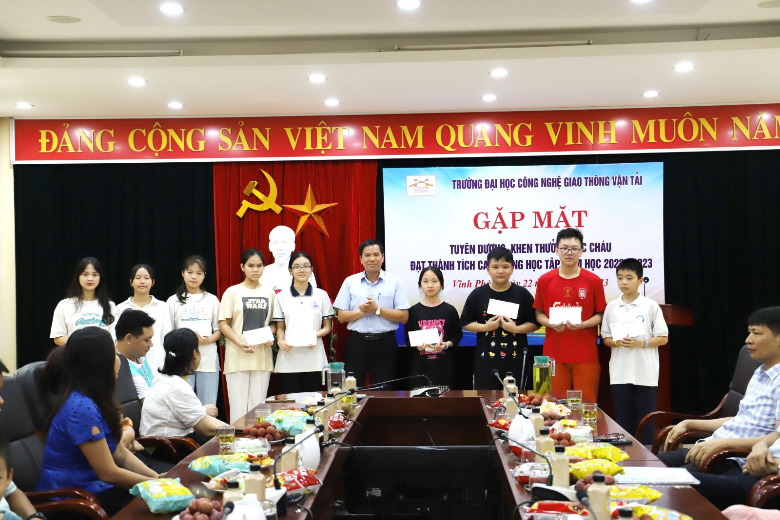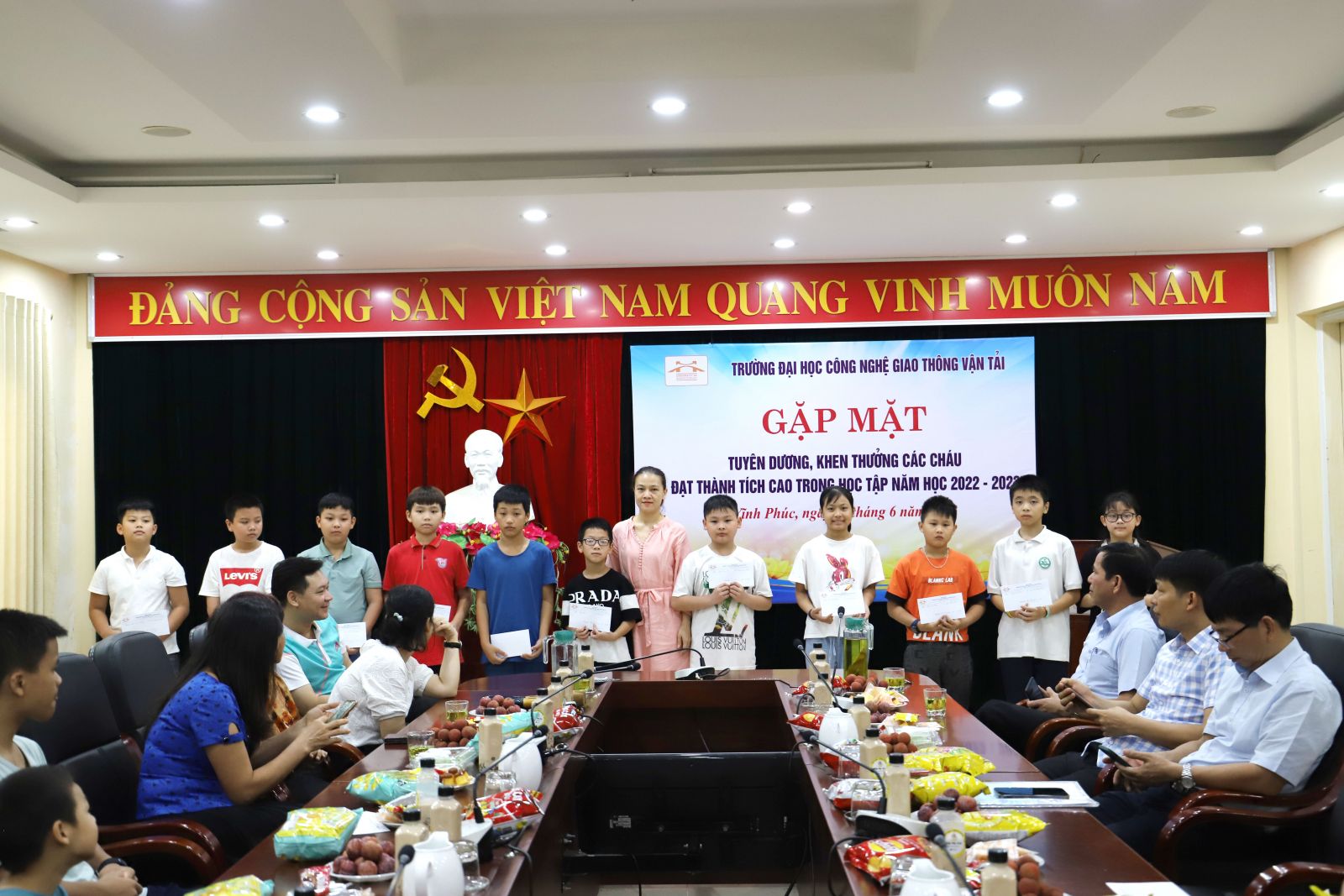 Chương trình “Gặp mặt tuyên dương khen thưởng các cháu là con CB,VC, NLĐ Nhà trường đạt thành tích cao trong học tập” là một trong những hoạt động thường niên luôn được Công đoàn Trường Đại học Công nghệ GTVT chú trọng thực hiện nhằm góp phần chăm lo đời sống vật chất, tinh thần cho cán bộ, viên chức nhà trường. Chương trình thể hiện tình cảm, sự quan tâm đầy trách nhiệm của Nhà trường đối với các cháu thanh, thiếu nhi cũng như đối với gia đình của các cán bộ, viên chức. Đồng thời, hoạt động cũng tạo ra một sân chơi bổ ích, lành mạnh giúp các cháu có cơ hội gặp gỡ, giao lưu, qua đó tăng cường gắn kết giữa các cán bộ, viên chức trong toàn trường.