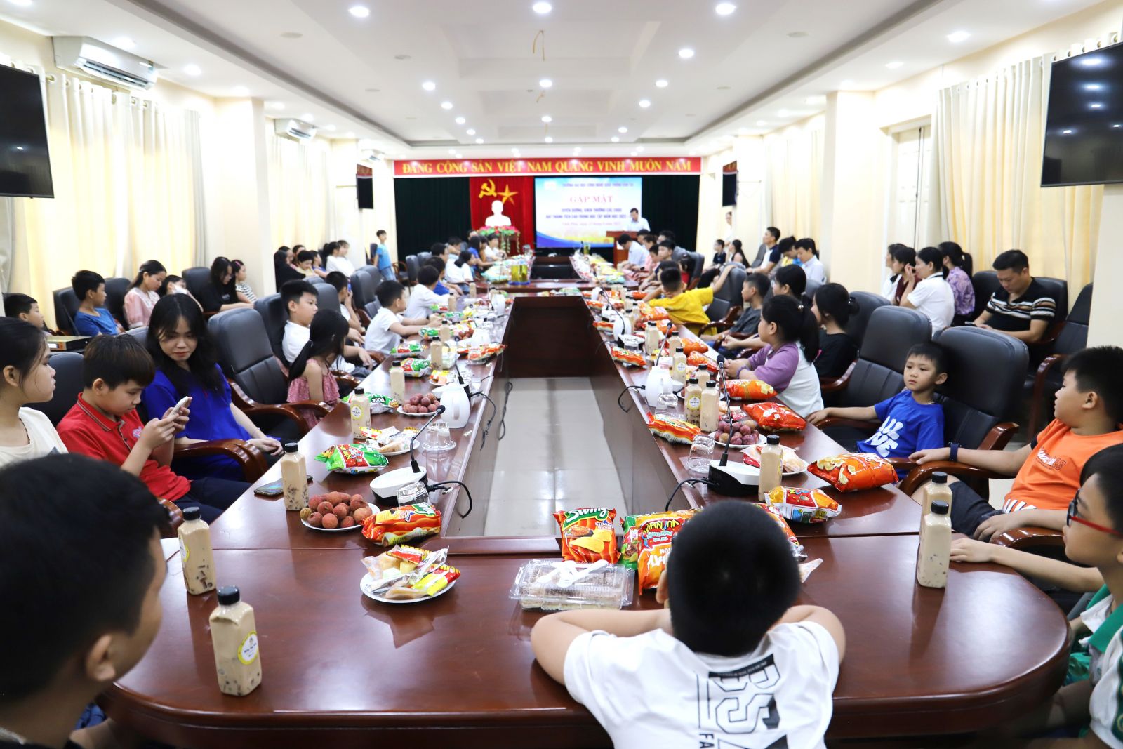 Tại chương trình, Lãnh đạo Nhà trường và Công đoàn trường đã trao tặng những phần quà ý nghĩa cho các cháu đạt thành tích trong các kỳ thi học sinh giỏi cấp Tỉnh, cấp Thành phố và nhiều giải thưởng khác ở các cuộc thi Trạng nguyên toàn quốc, Tiếng Anh quốc tế, Khoa học - kỹ thuật, các cuộc thi vẽ tranh...
