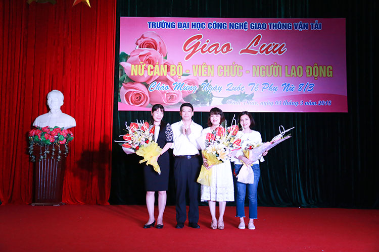 Mở đầu chương trình giao lưu, PGS.TS. Đào Văn Đông - Bí thư Đảng ủy, Hiệu trưởng Nhà trường đã gửi lời chúc mừng và tặng hoa cho đại diện Ban Nữ công của 3 cơ sở đào tạo và các nữ cán bộ giảng viên, công nhân viên tham gia chương trình. Những bông hoa hồng xinh xắn đã được trao đến tận tay nữ cán bộ giảng viên, công nhân viên thể hiện sự tôn vinh, sự quan tâm, trân trọng các cán bộ nữ của Đảng ủy, BGH Nhà trường.