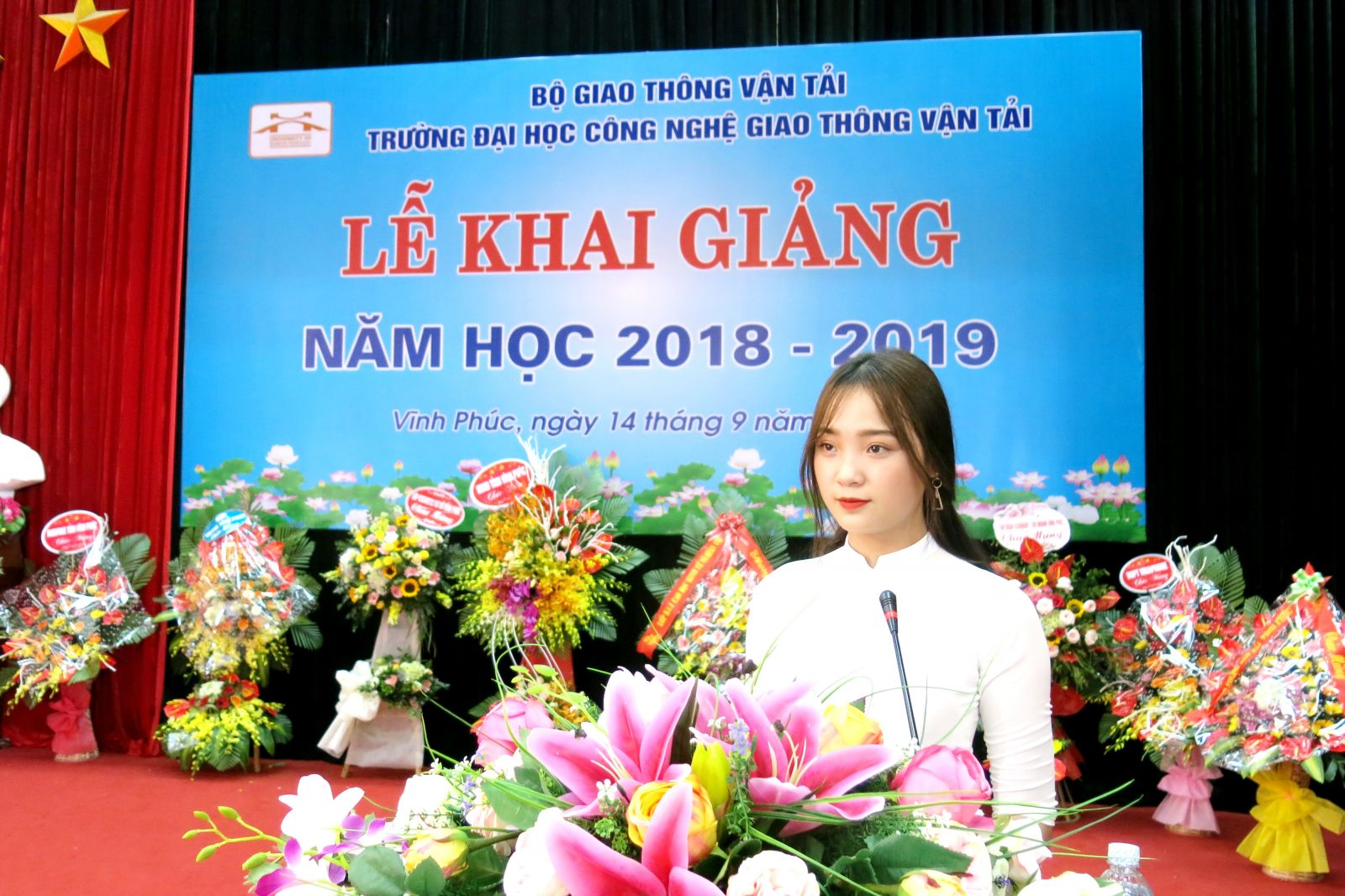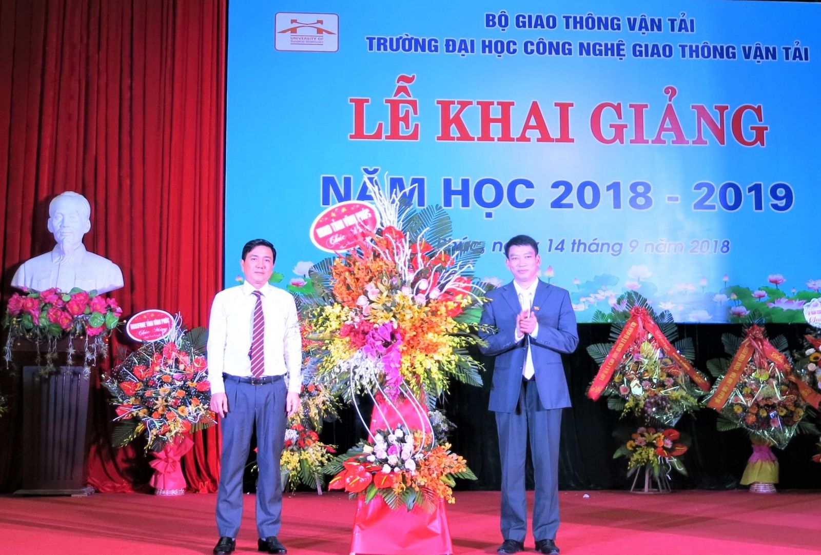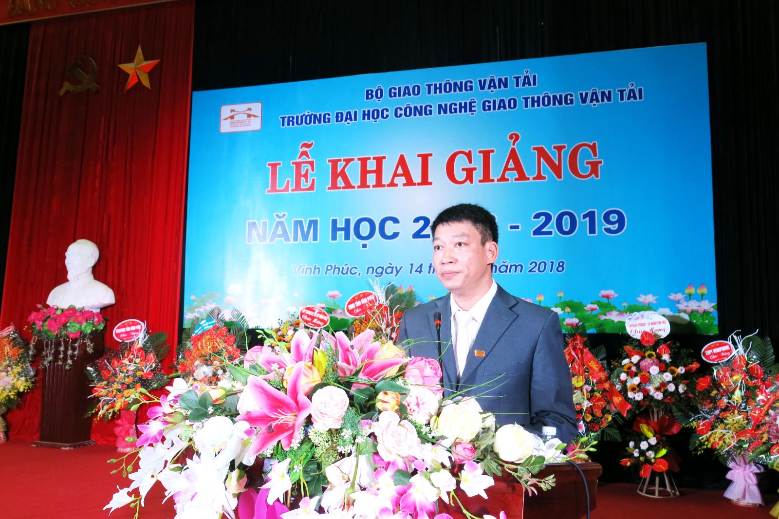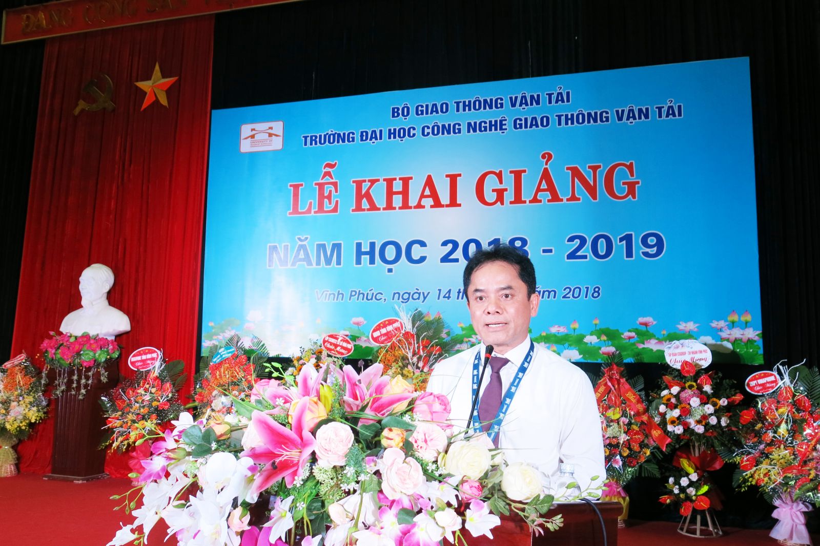 Thay mặt Đảng uỷ, Ban Giám hiệu Nhà trường, PGS. TS. Đào Văn Đông - Bí thư Đảng uỷ, Hiệu trưởng Nhà trường đã phát biểu khai giảng năm học mới, trong đó khái quát những thành tích nổi bật của Nhà trường đã đạt được trong năm học 2017 - 2018 và phương hướng, nhiệm vụ trọng tâm của năm học mới 2018 - 2019; khẳng định những thành tích đạt được vừa qua là kết quả lao động miệt mài, sáng tạo của đội ngũ cán bộ, giảng viên, sinh viên, của các tổ chức Đảng và các đoàn thể trong Nhà trường. Nhất định năm học 2018 - 2019 thầy và trò Trường Đại học Công nghệ GTVT tiếp tục gặt hái nhiều thành công mới cả về dạy và học, về nghiên cứu khoa học và hợp tác quốc tế, xứng đáng là một trong số ít trường Đại học của Việt Nam kiên trì theo đuổi con đường công nghệ. Thành công của năm học mới cũng tạo tiền đề vững chắc để Nhà trường sớm tiến tới tự chủ về mọi mặt và đáp ứng tiêu chí của một trường đã được quy hoạch phát triển thành trường trọng điểm quốc gia.