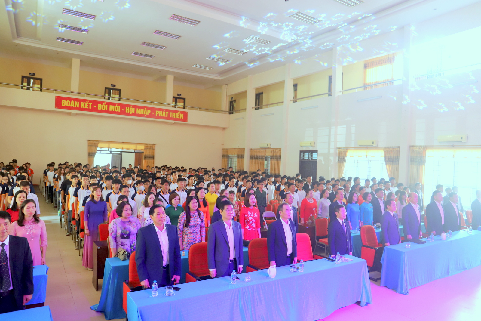 Các đại biểu, các thầy cô giáo và các em sinh viên thực hiện nghi lễ Chào cờ